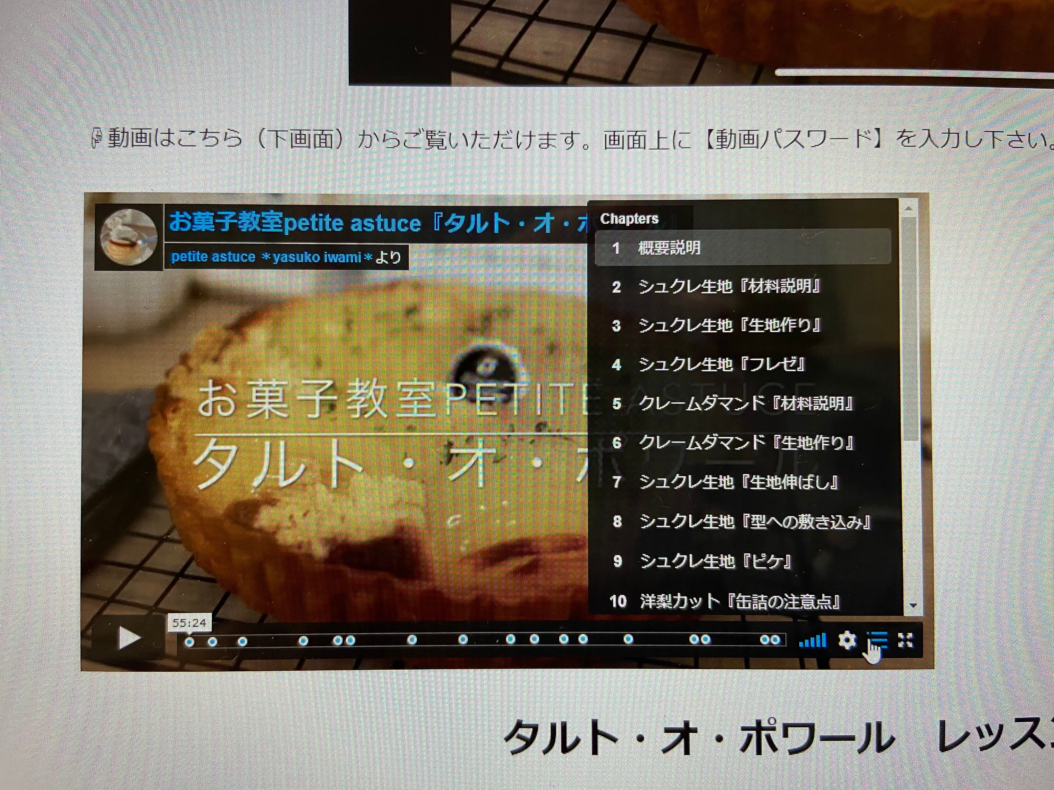 ※ 動画の視聴に必要なURLやパスワードは、レシピ資料と一緒に郵送にて、お申し込みから1週間以内に発送の準備をさせて頂きます。