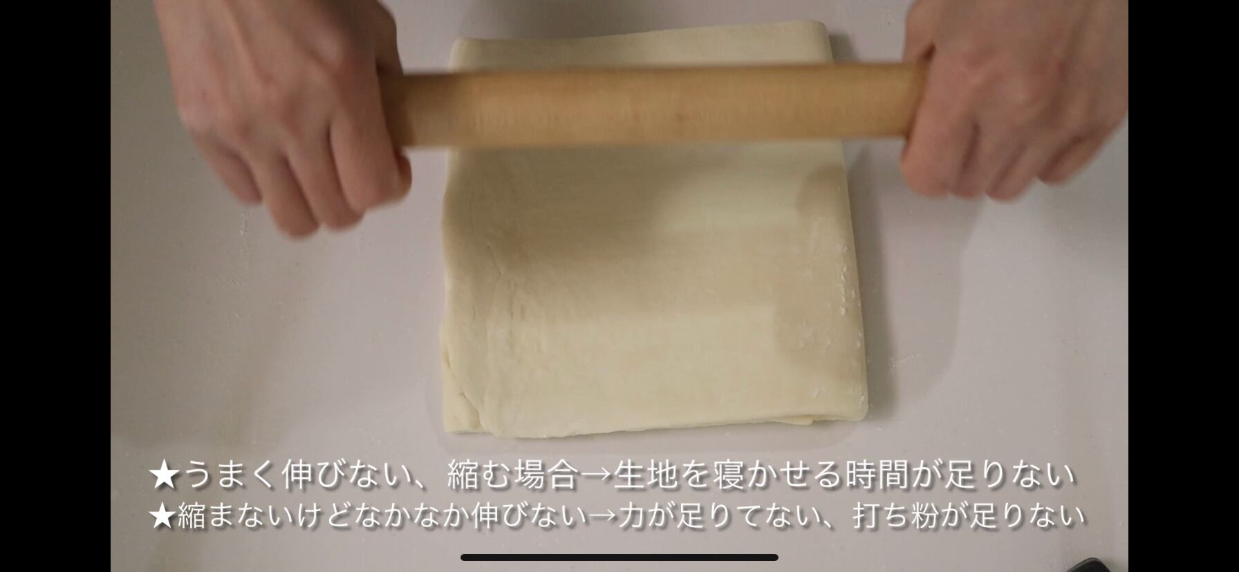 動画レッスンでは、その生地の仕込みやパイ生地の折り込み、伸ばしのコツなどもしっかり見られるので、初めての方も、すでに対面で受講済みで復習したい方にもおすすめです。