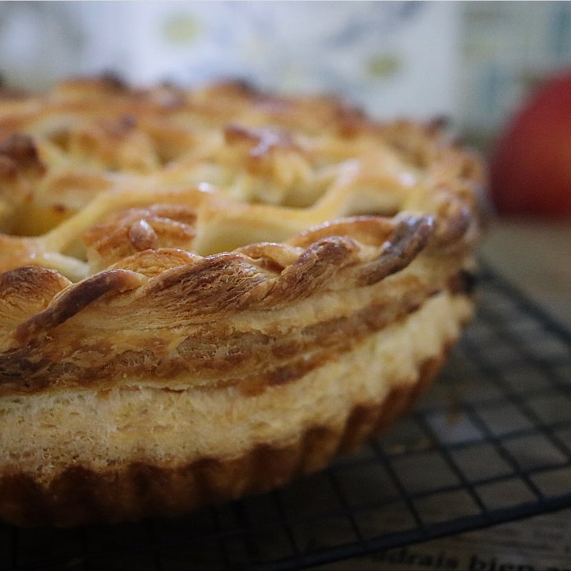 本格パイ生地の折り込み、コクのあるクレームダマンド、リンゴの本来の爽やかな甘酸っぱさをそのままにサックリと軽い味わいのリンゴのフィリング、パイのあみあみのコツ、艶出し、焼き方と焼き加減、焼き上がりの見極め、リンゴたっぷりでも食べ心地は重たくならず、底もサクサクに焼き上げるためのポイントまで☺︎